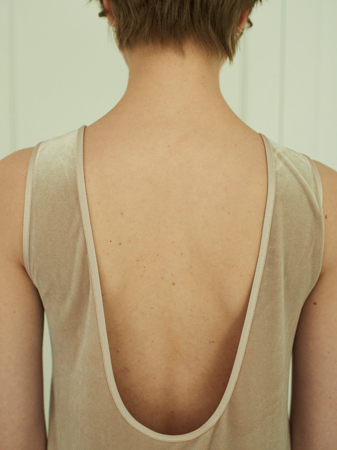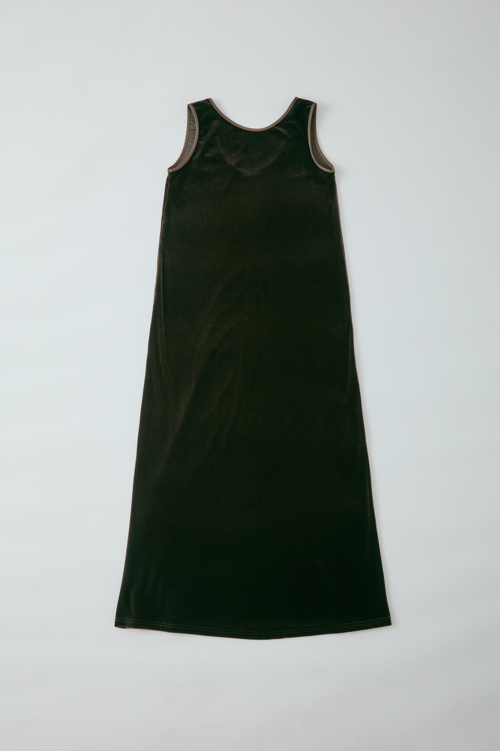 トリコット編みのベロア素材を使用した、前後でお召しいただけるワンピース。