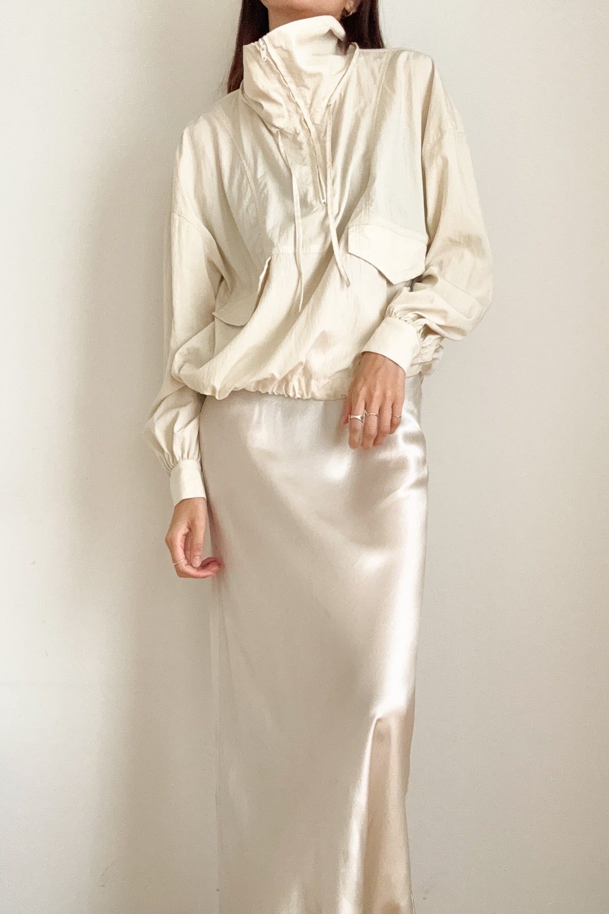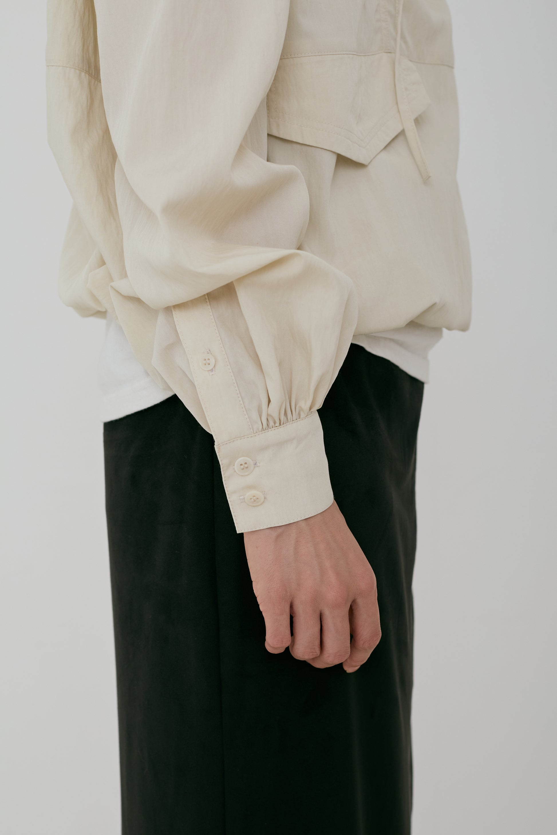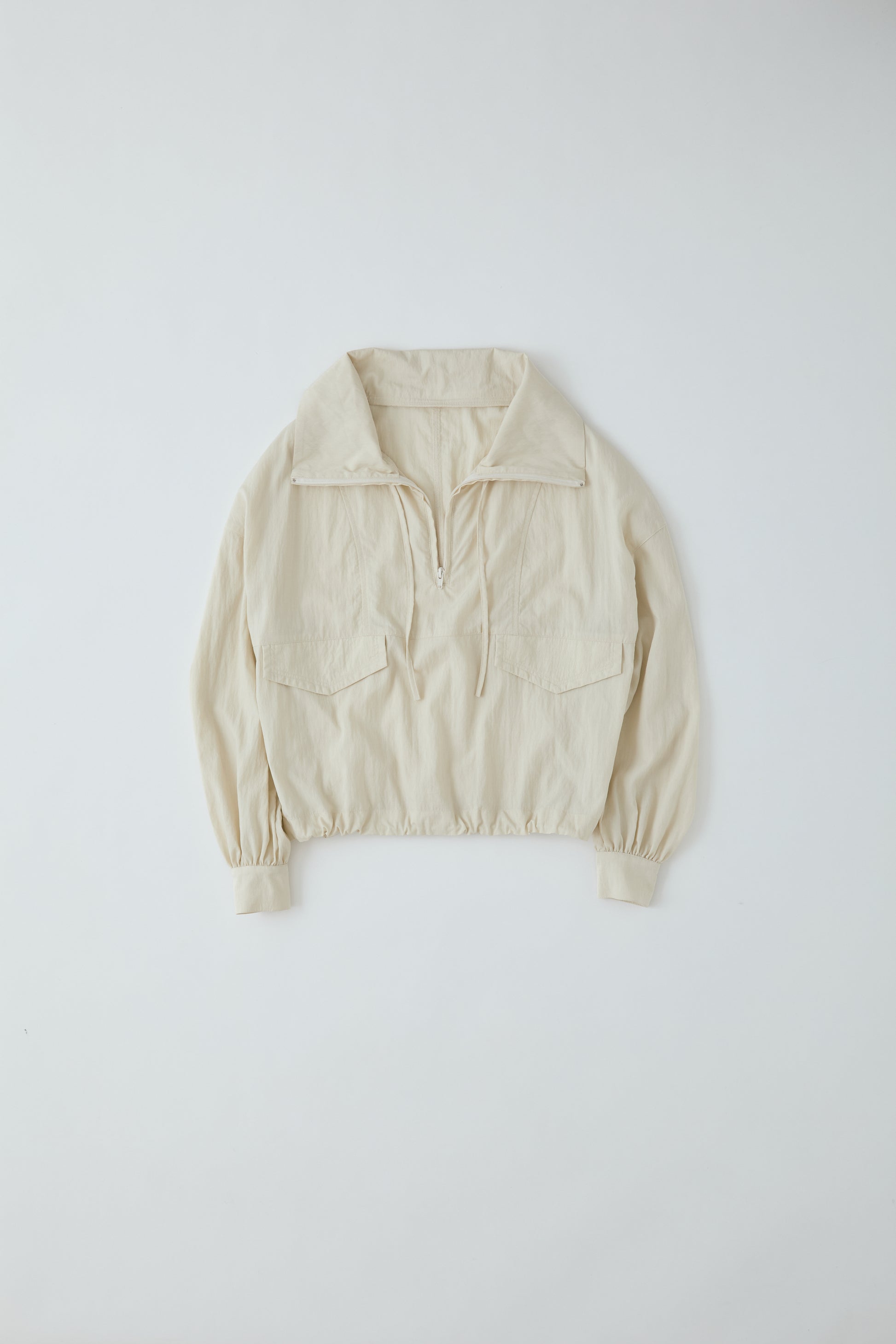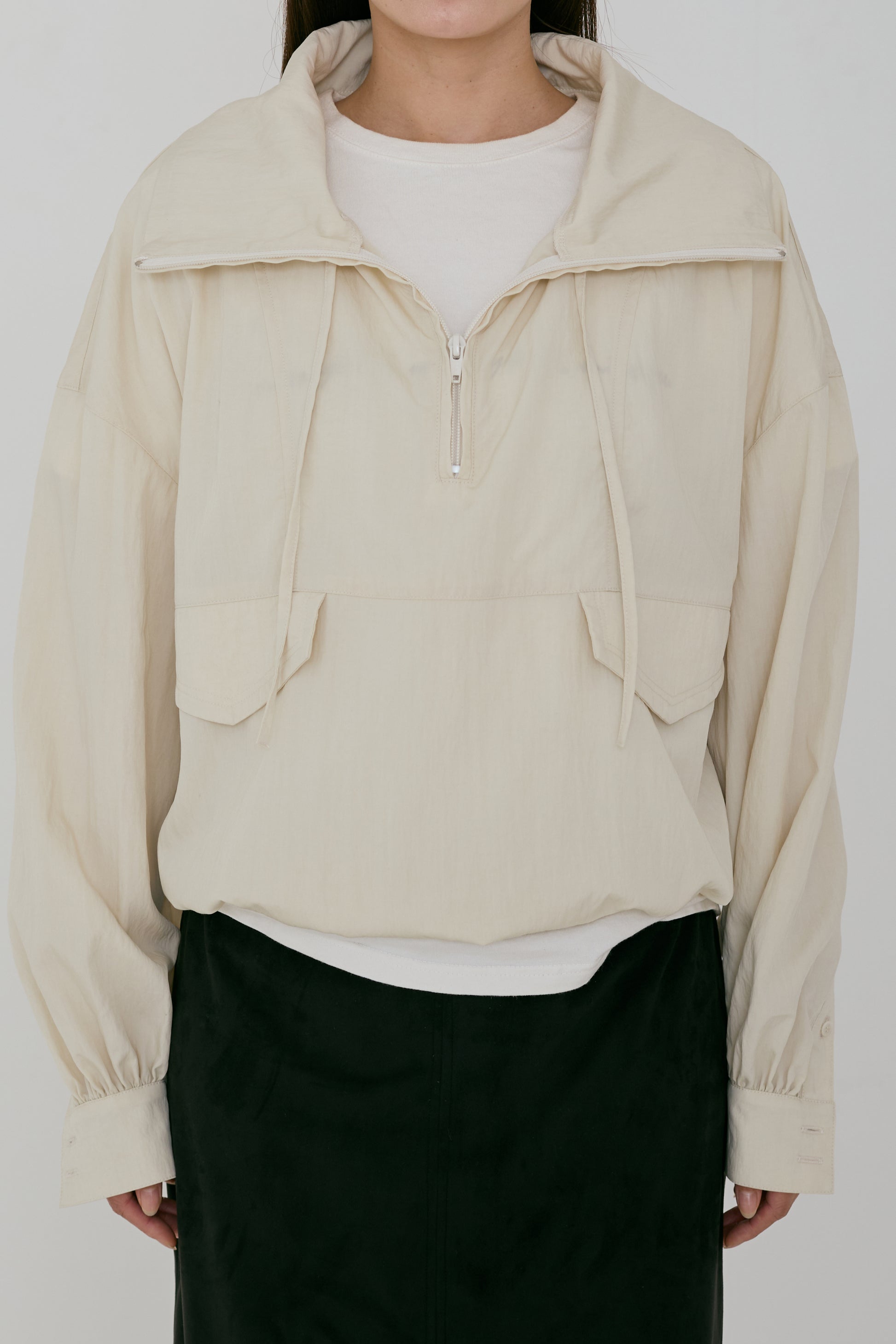 アノラックから着想を得つつ、袖口はシャツブラウスのデザインを取り入れ、上品さをプラスしました。