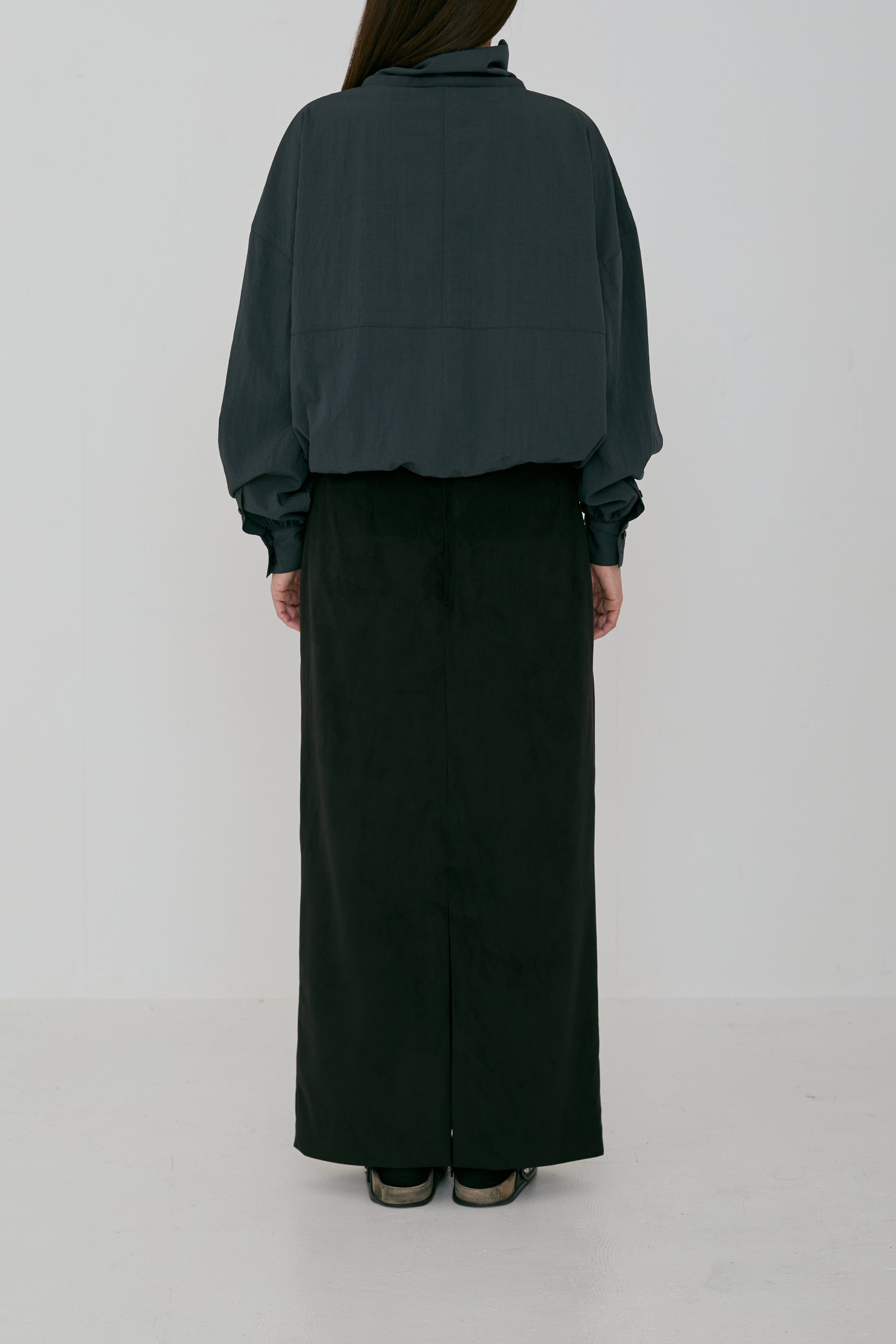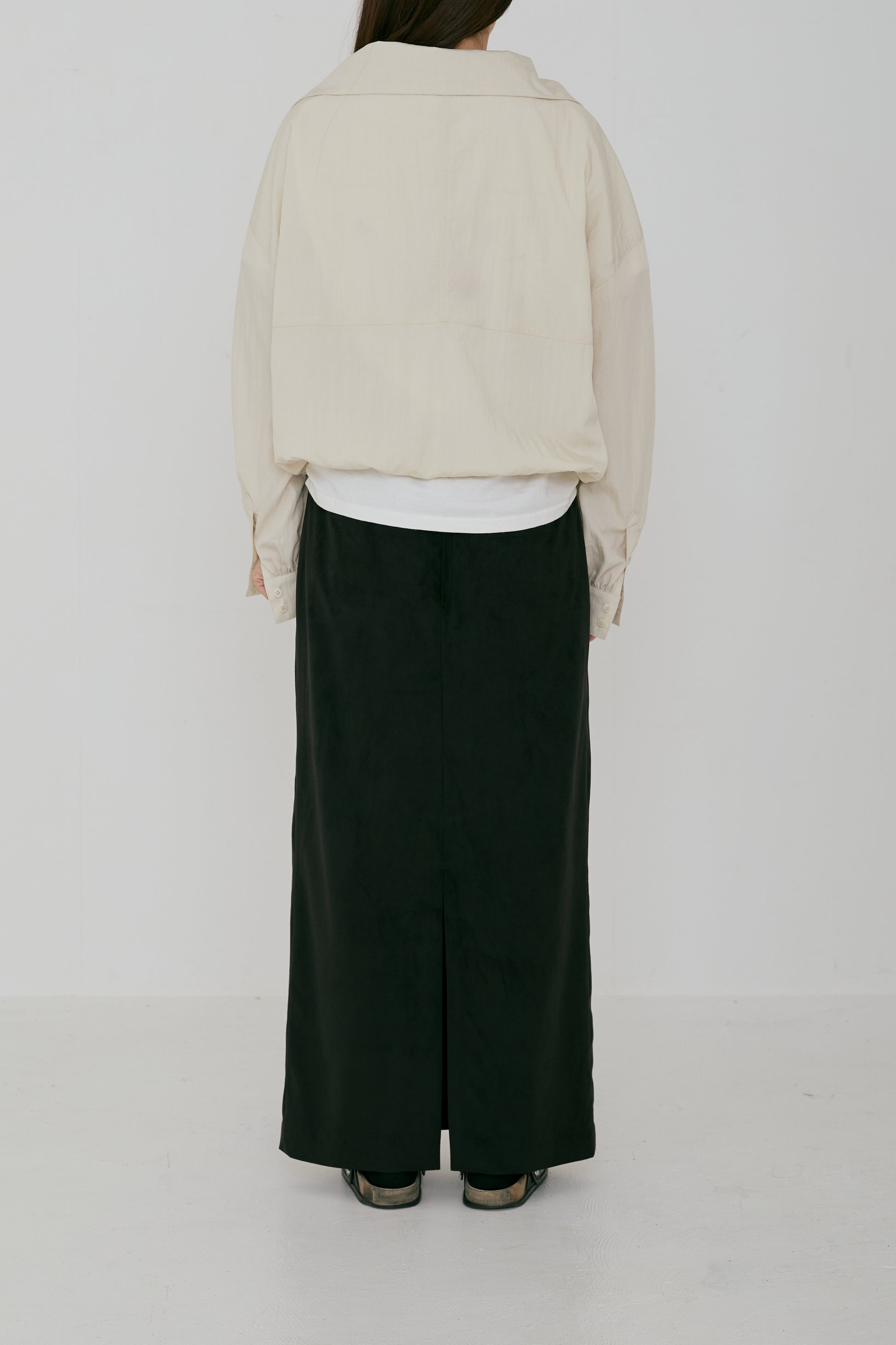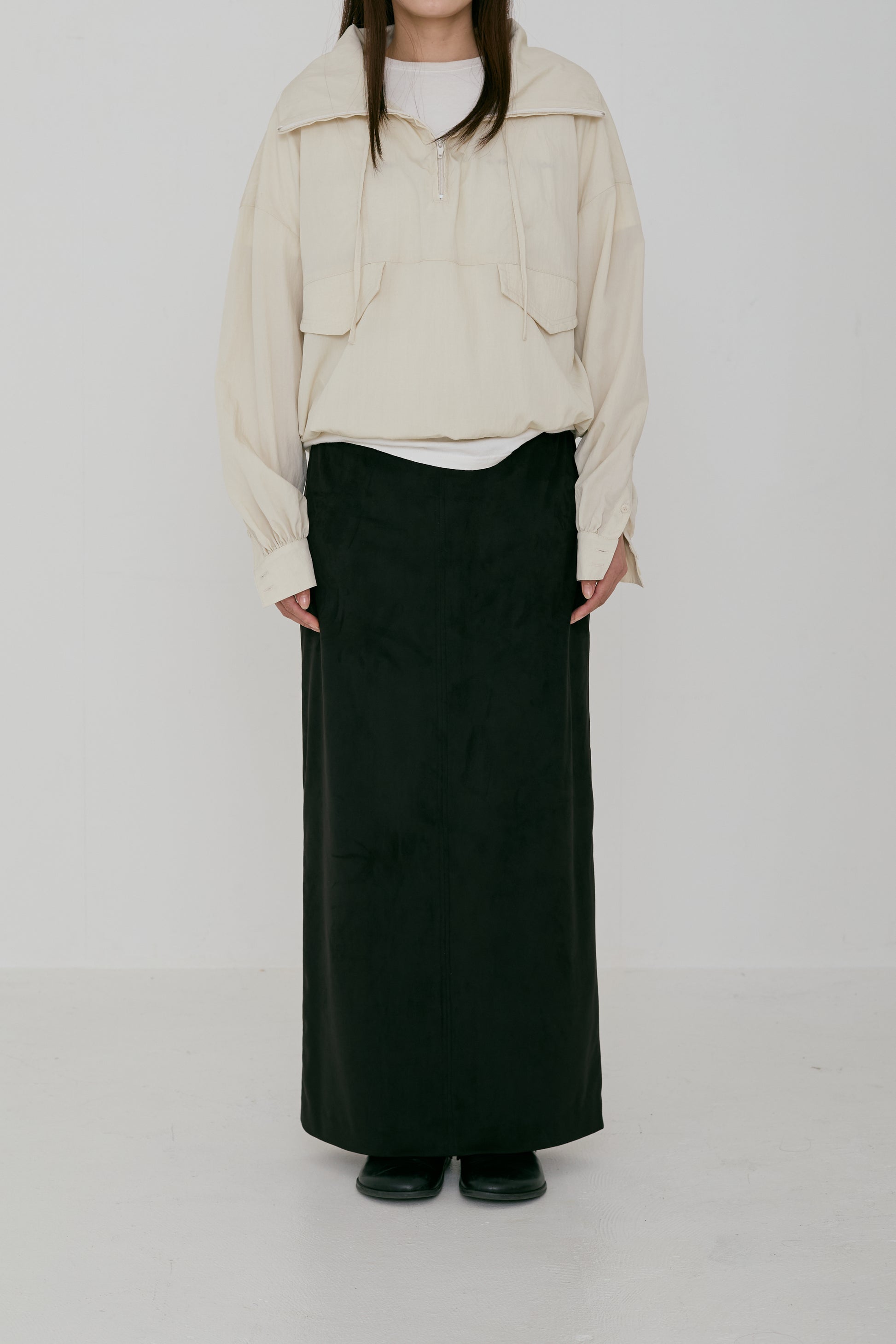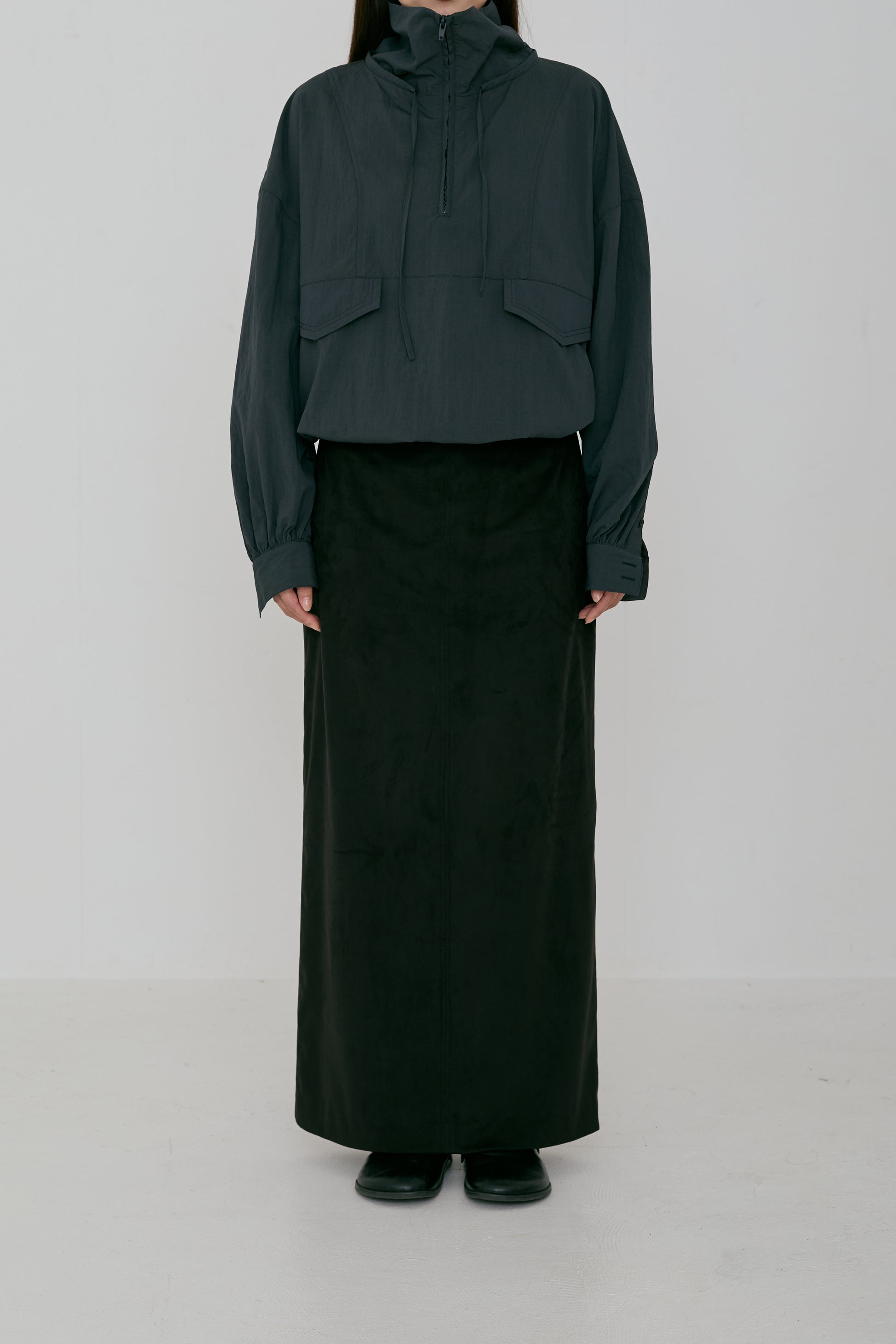 アノラックから着想を得つつ、袖口はシャツブラウスのデザインを取り入れ、上品さをプラスしました。