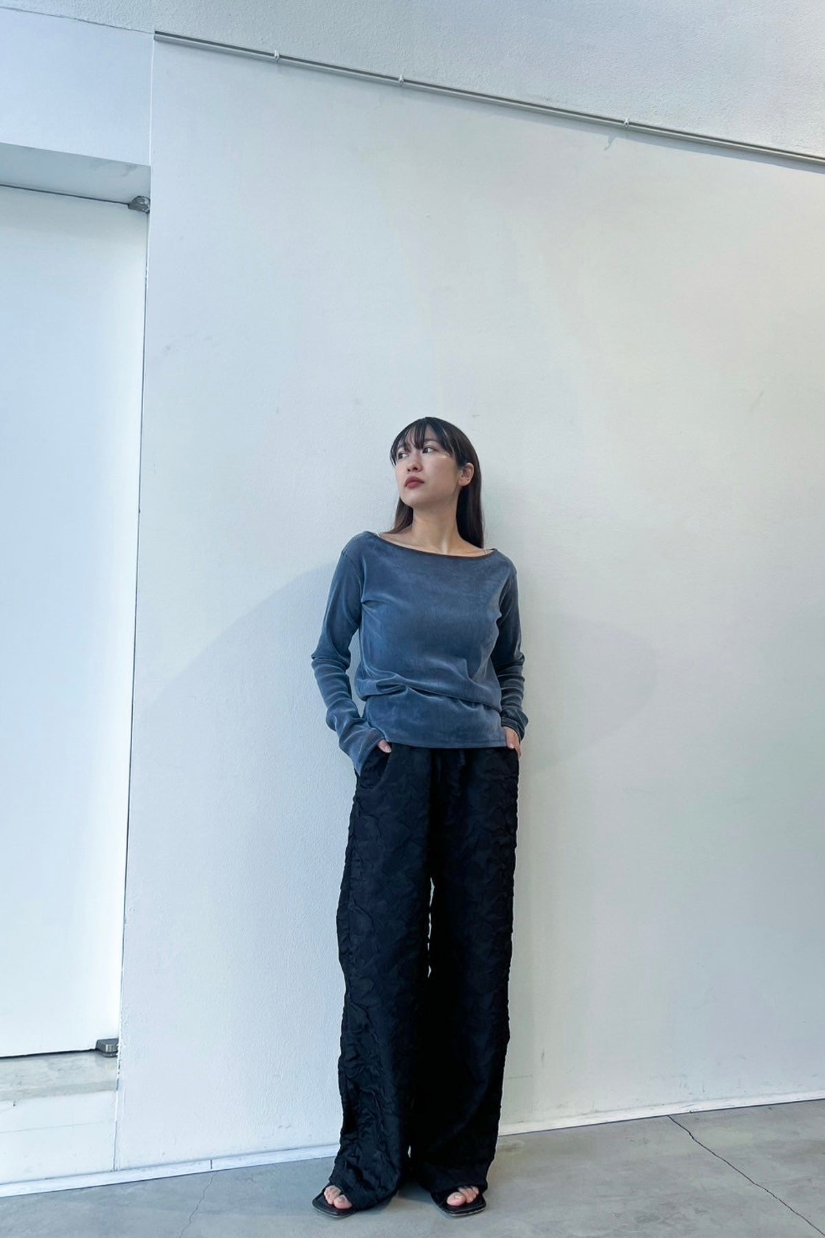 <Re stock> Wrinkle semi waid pants(japan made)