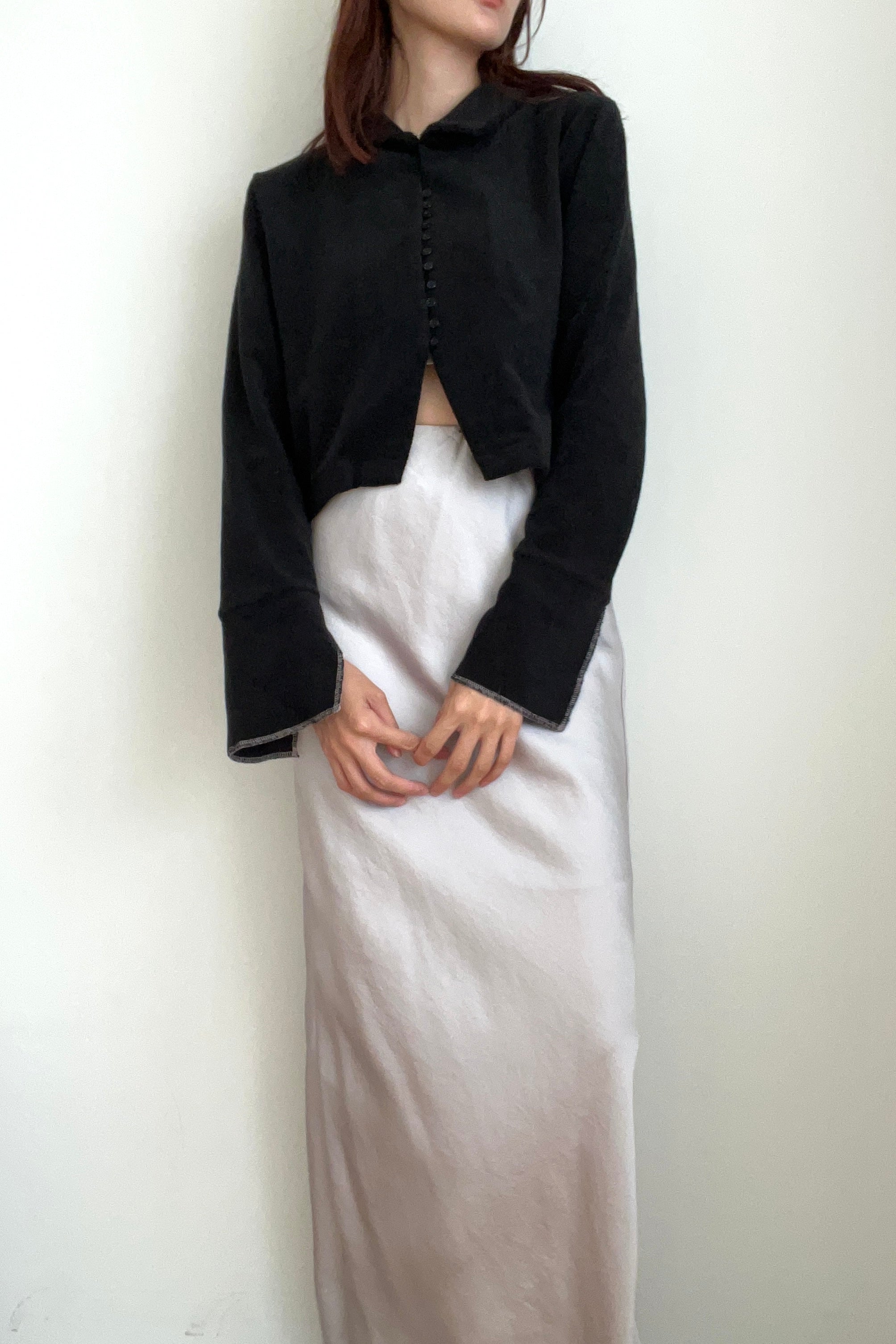 袖のスリットや裾のスキッパーデザインが女性らしさを演出。