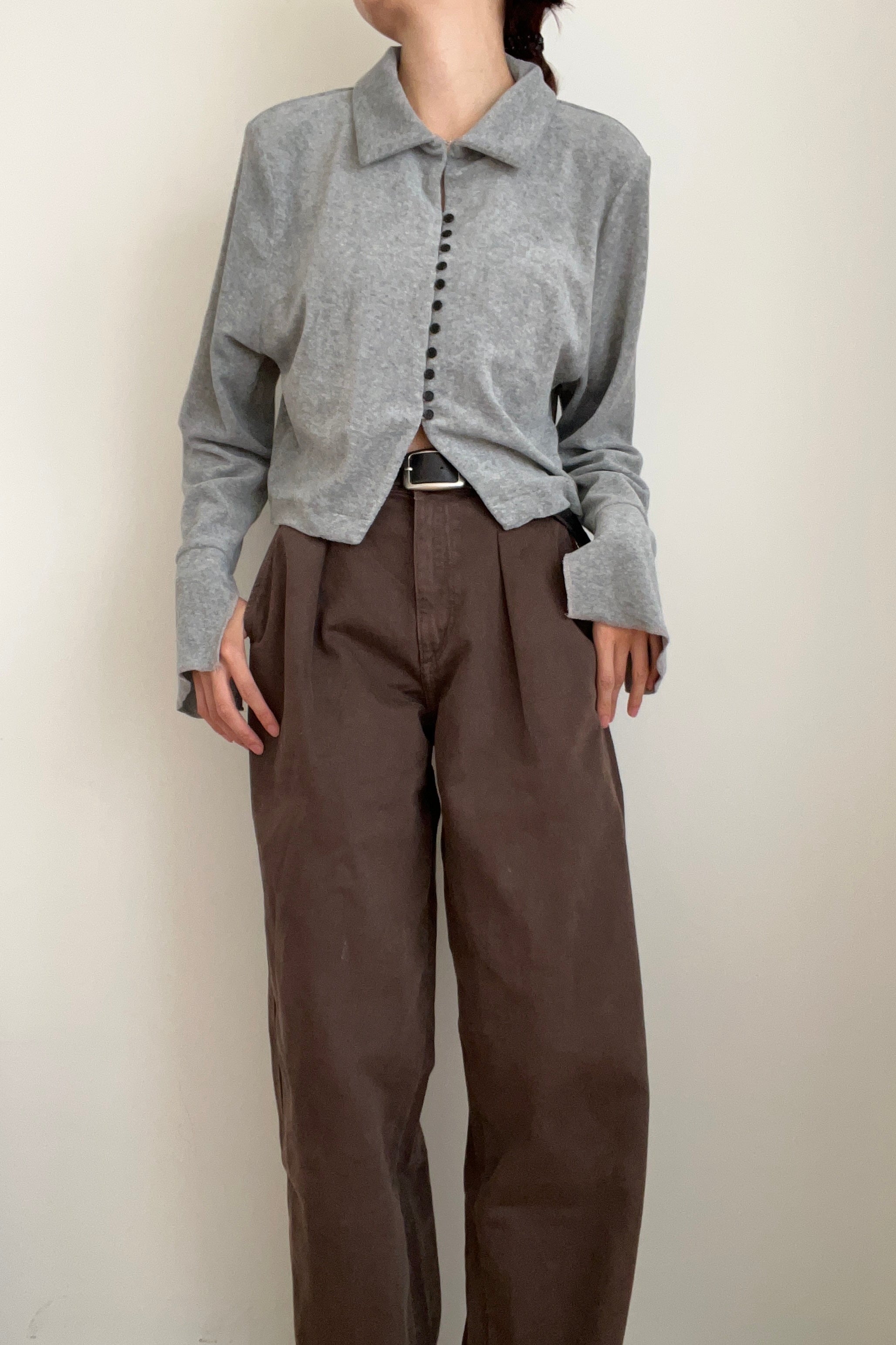 肌触りが良く伸縮性のあるパイル生地はを使用したシャツトップス。