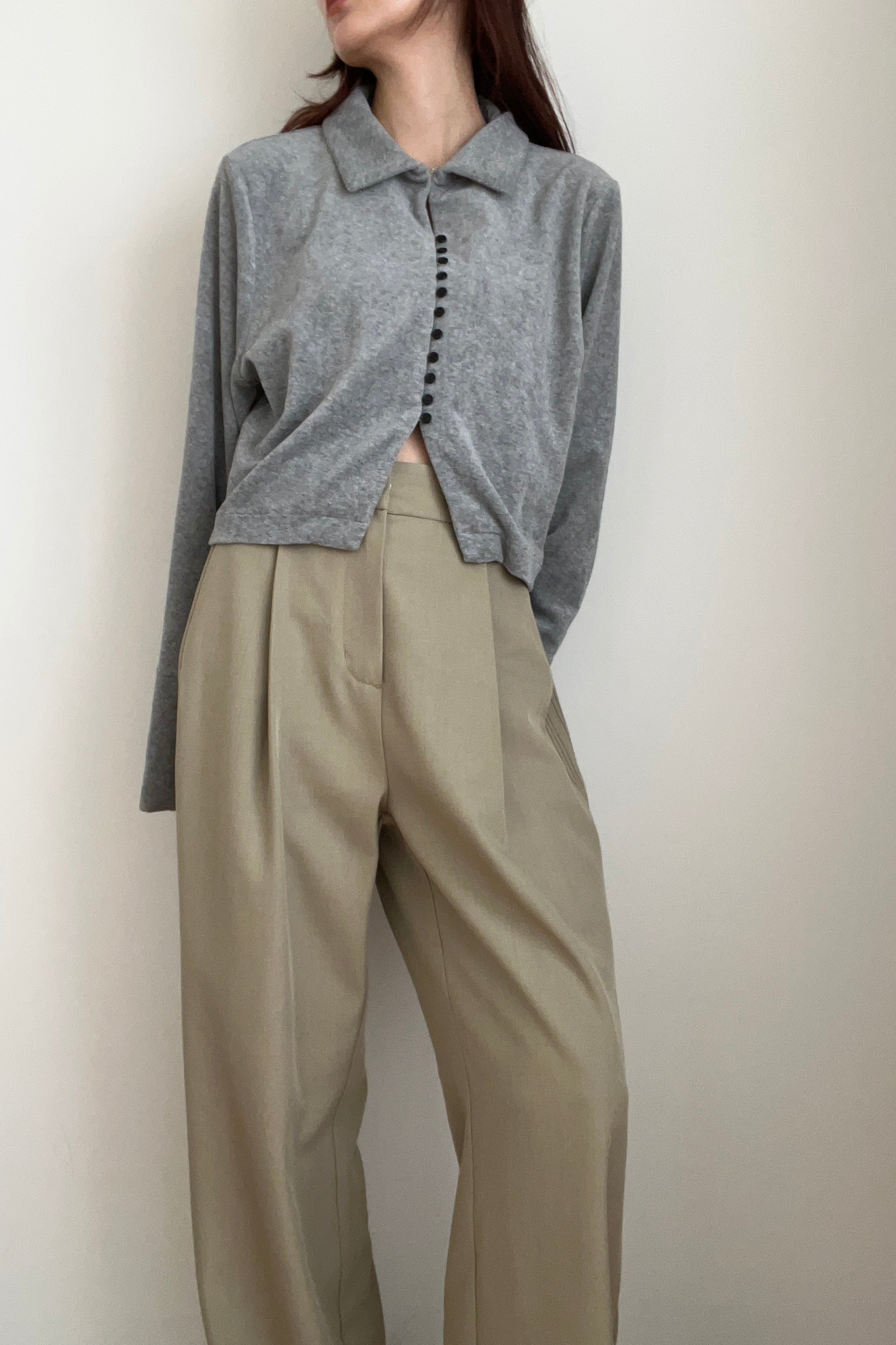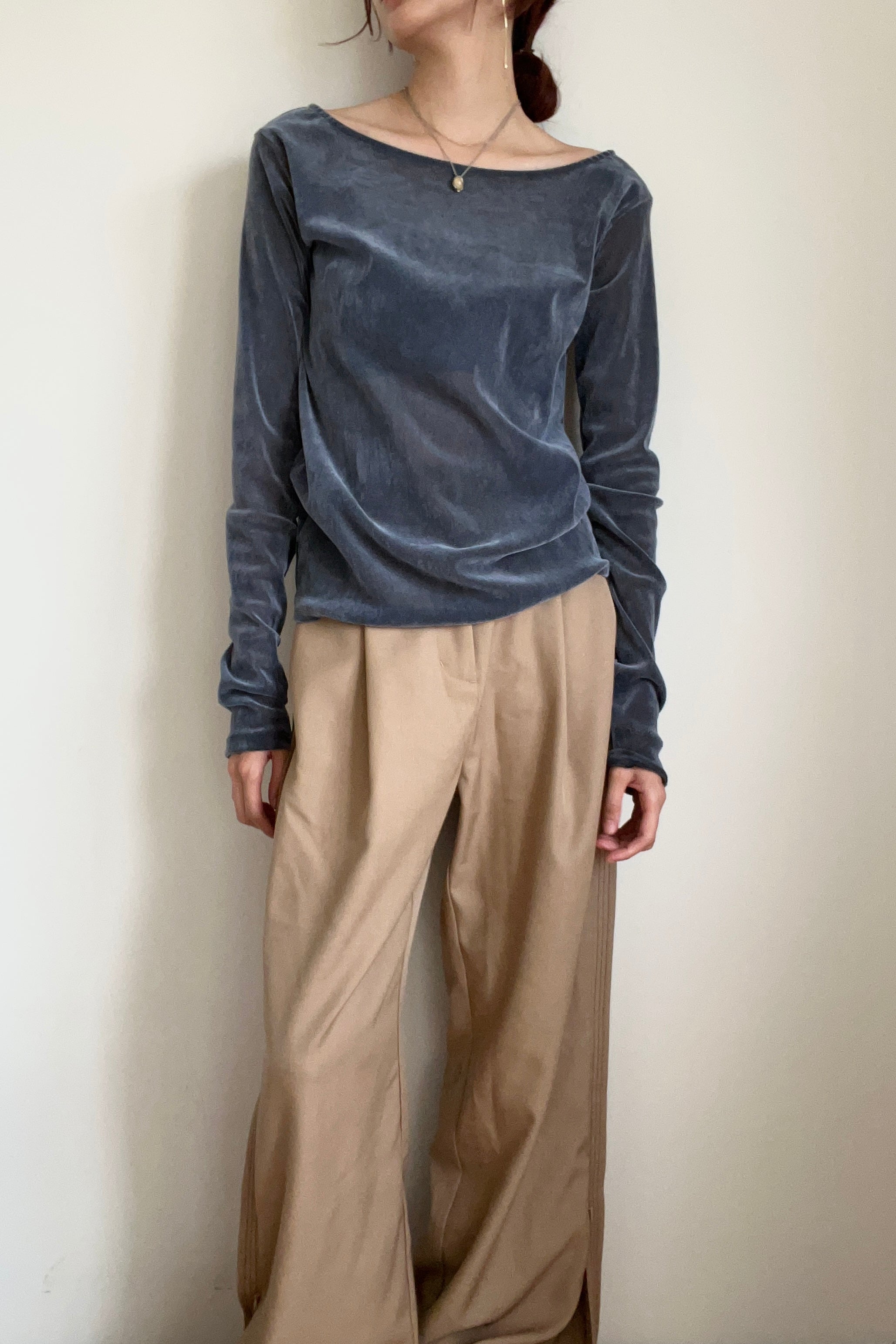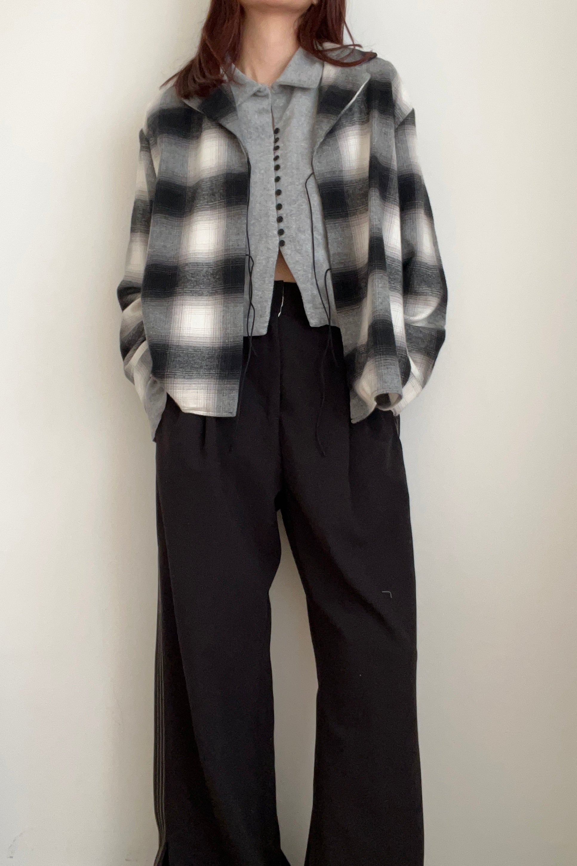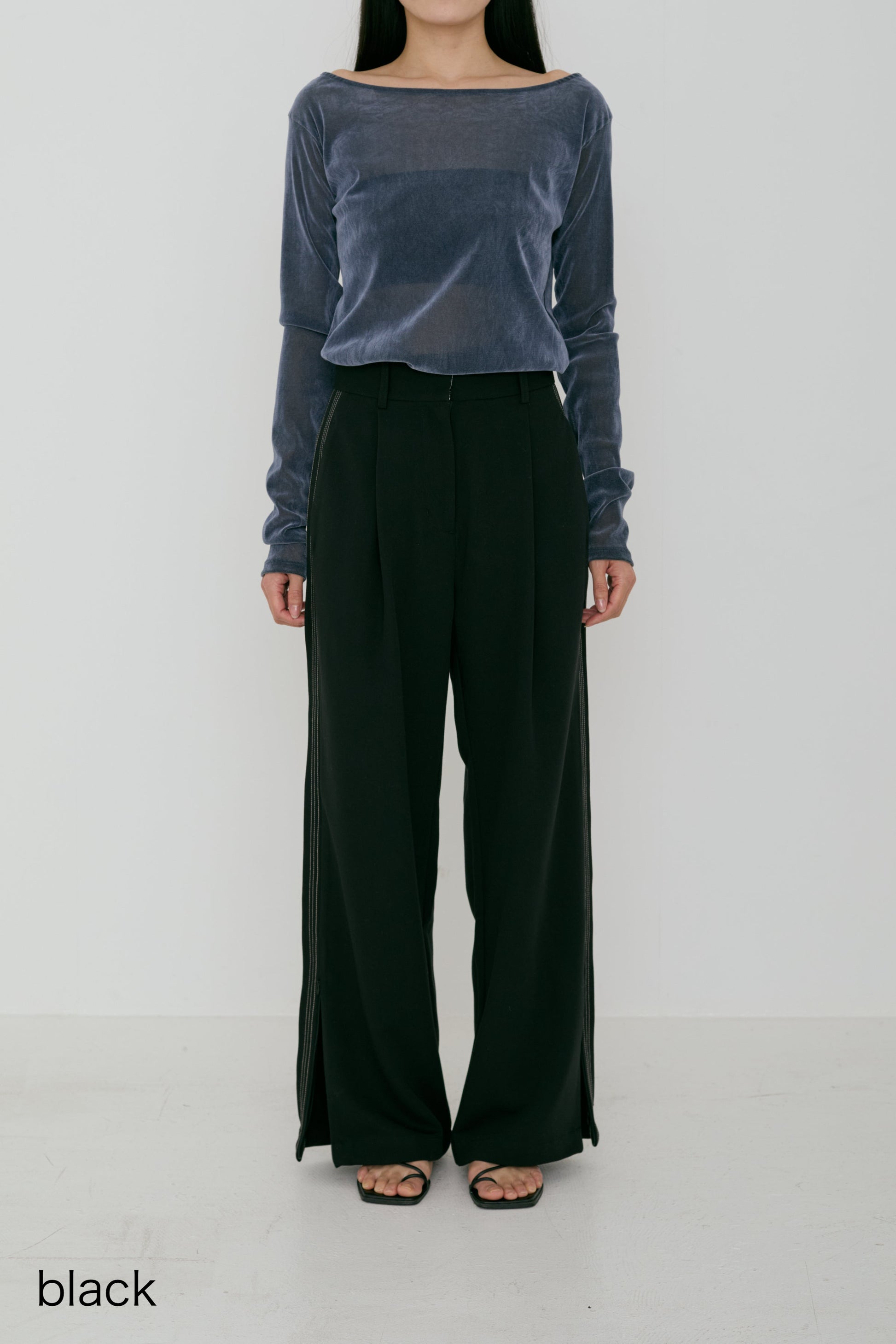 スタリングが難しいラインスウェットにインスパイヤされ、あえて綺麗めなツイル生地に落とし込んだ一枚。