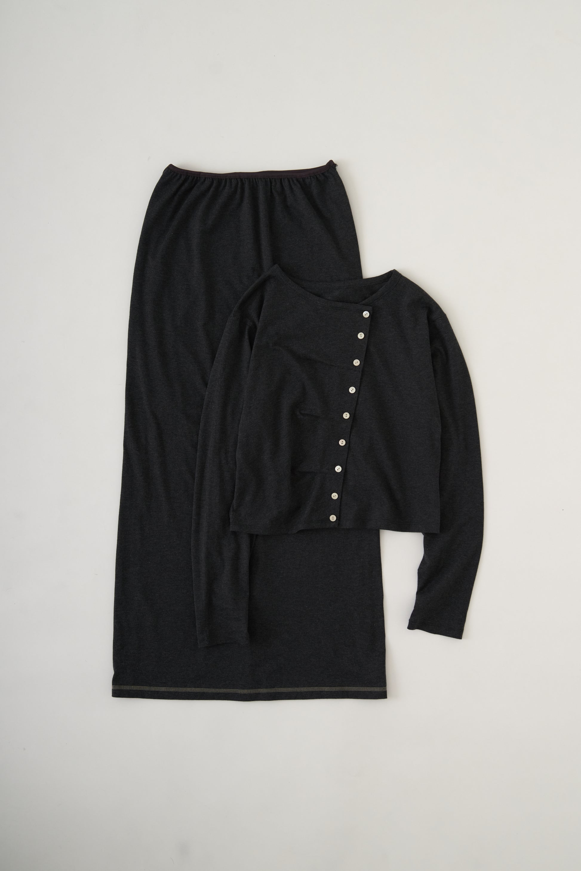 強度にも優れており、洗濯を重ねても風合いが崩れにくく、日常にも心地よく寄り添う一枚に仕上げました。伸縮性があるので、リラックスウェアとしてもお召しいただけます。