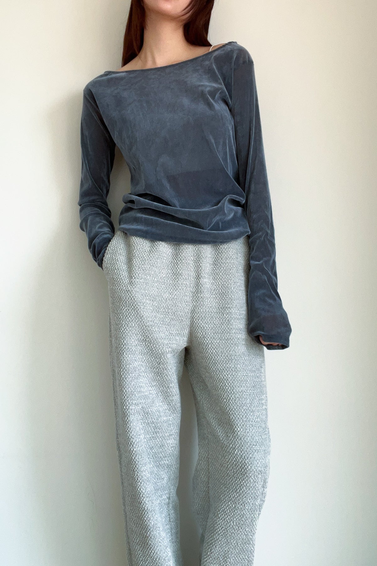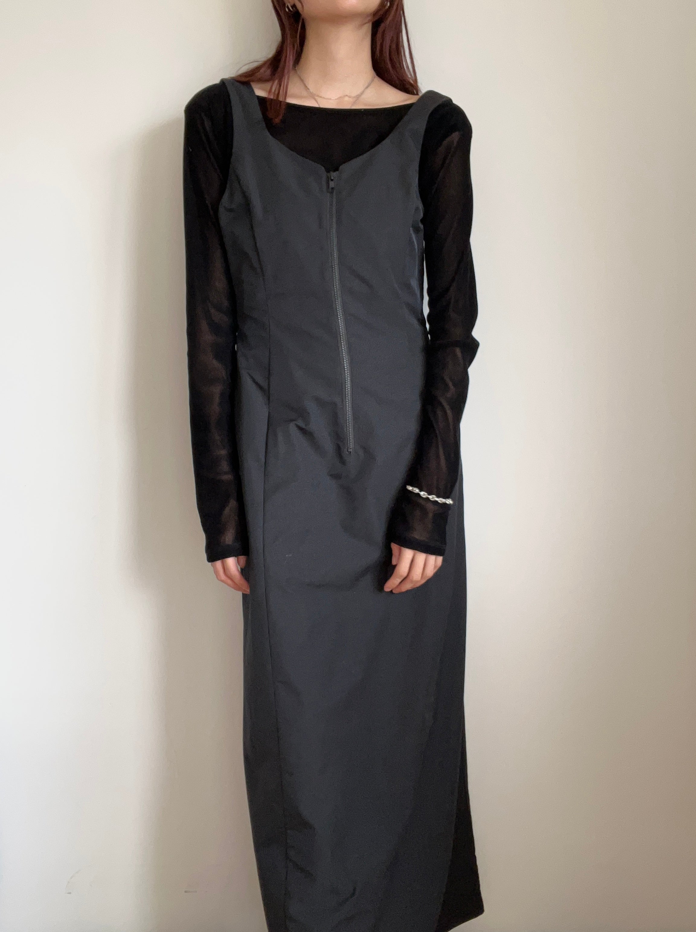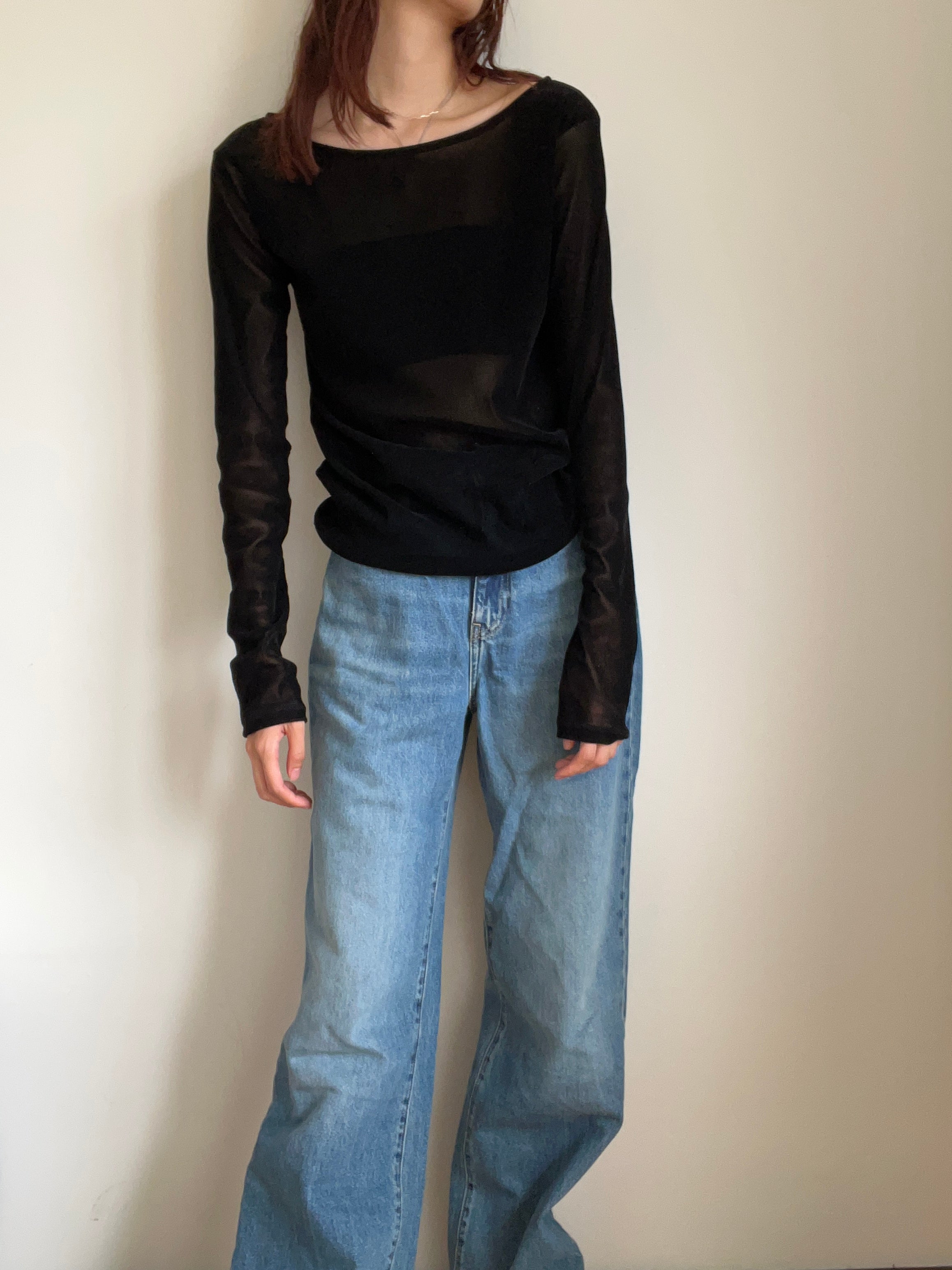 日本生地を使用した、透け感のあるチュール素材に細かいフロッキーを全面にあしらうことで、透け感をたのしみつつ秋冬の素材感も楽しめるデザインに仕上げたカットトップス。